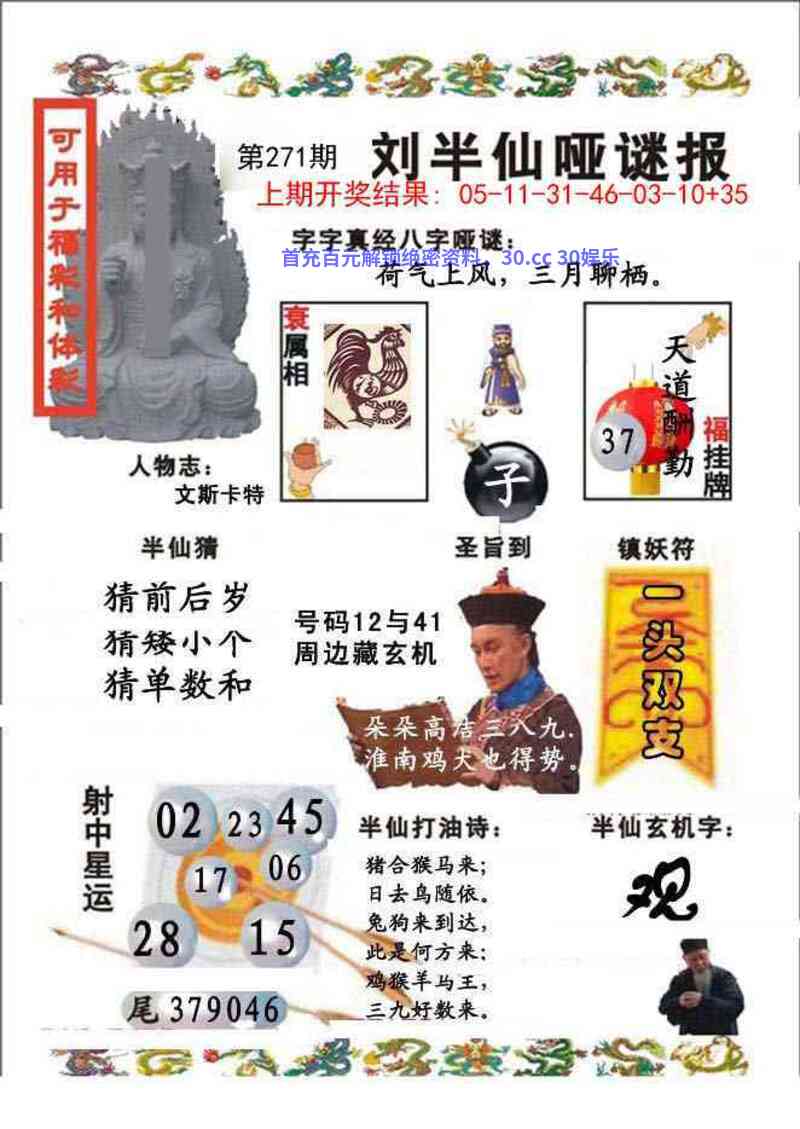 六合至尊🍀刘半仙哑谜报图🍀990176.com